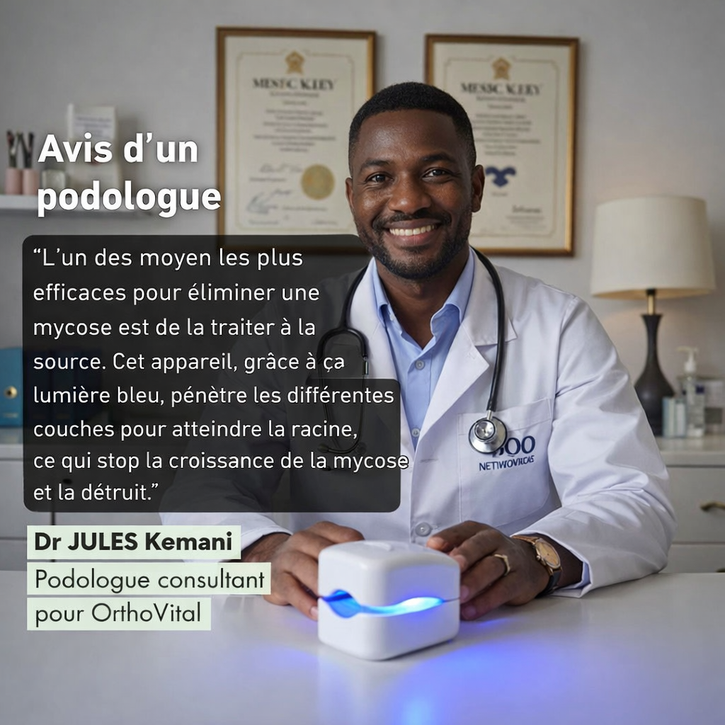 L'appareil Orthovital utilise la puissance de la lumière bleue pour traiter efficacement les mycoses à la source, sans effets secondaires.